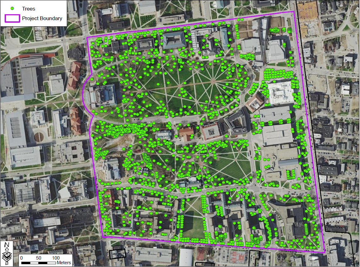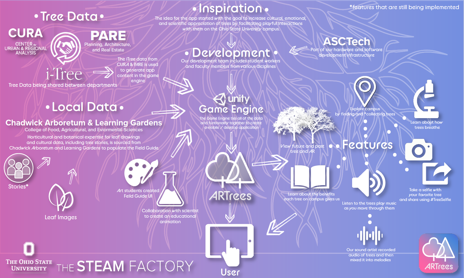 Trees provide value in many realms, including environmental, economic, cultural, and aesthetic. Their important roles as ecosystem service providers are quantified in dollar amounts and they are actively inventoried as assets held by cities. The Ohio State University has collected data on nearly every tree on campus and recognizes the need for additional plantings. ARTrees, which is short for Augmented Reality Trees, functions as an engaging interface between the real world (actual trees on campus), a potential future (virtual tree canopy), and multiple types of data. We believe this research will generate productive conversations across disciplines about how data is experienced and how trees are valued and it will highlight the interactions between cultural and scientific values.