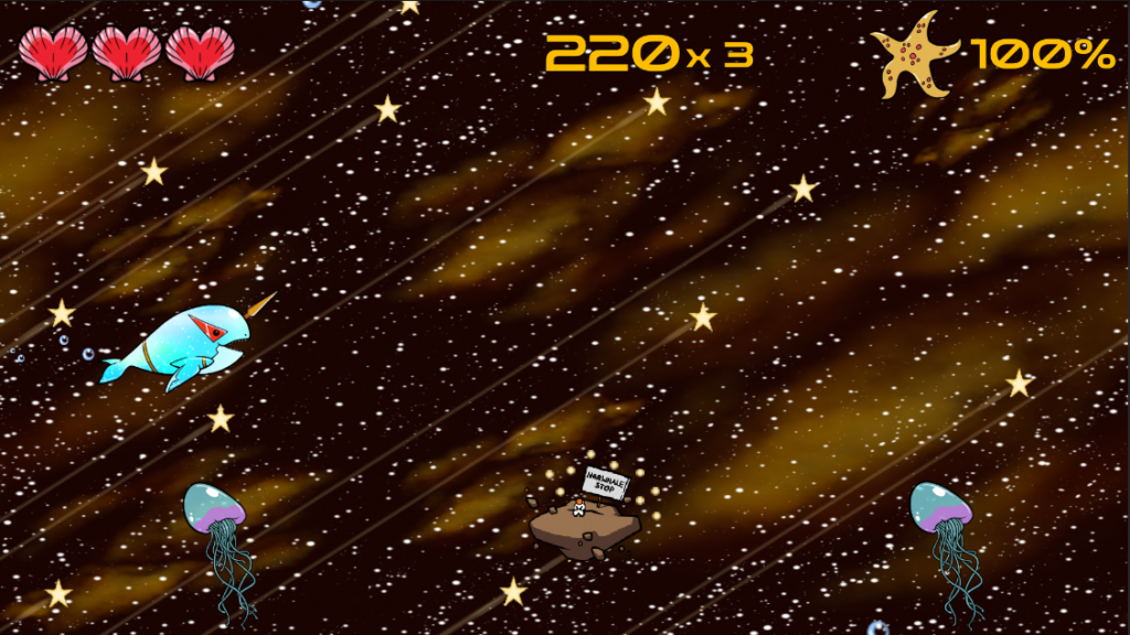 Hyperspace Narwhale was our entry for Ludum Dare 48, a game jam where people from all over the world come together to make a game in 72 hours.